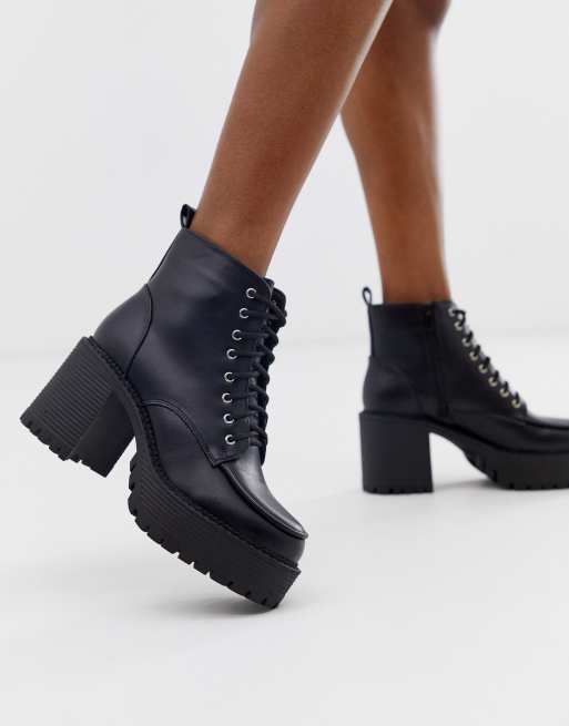 Botas Negras De Tacón Grueso Con Cordones De Truffle Collection | ASOS